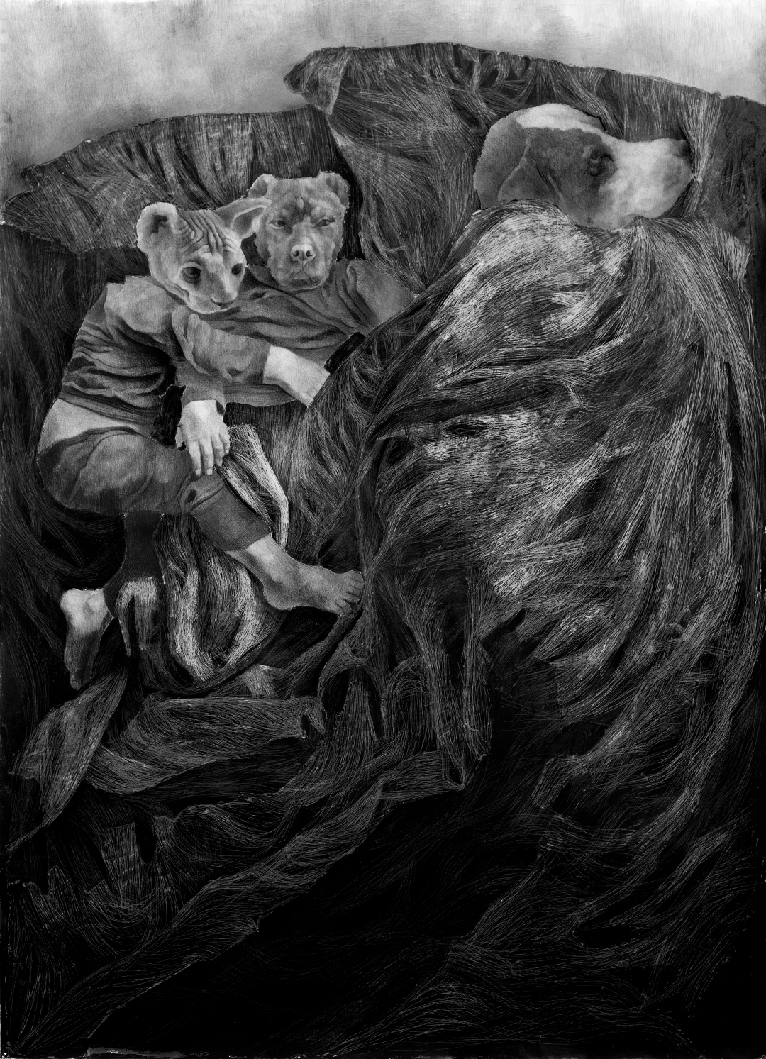 Fauna triunfante - Lápiz y esgrafiado sobre papel - 150 ctms x 130 ctms - 2016